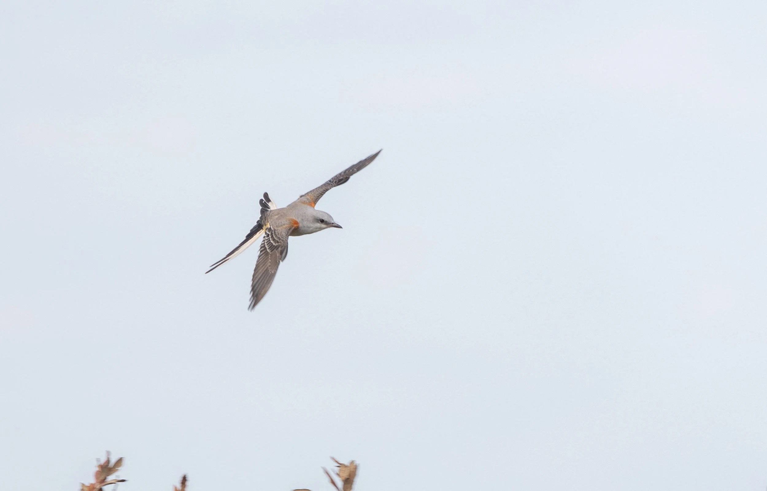 The species composition throughout the woodlots was the same all day. There were surprisingly high numbers of Nashville Warblers. The most common species were Common Yellowthroats, American Redstarts, and Northern Parulas. More fall arrivals like Blue-headed Vireos showed themselves as well. American Kestrels, Merlins, and Broad-winged Hawks were in the skies. I had one Swainson’s Hawk, a pretty adult, on an afternoon thermal. Crested Caracaras were in the fields and on fencelines. Dozens more Scissor-tailed Flycatchers were around and I checked each group carefully for rarer kingbird species (fruitlessly).