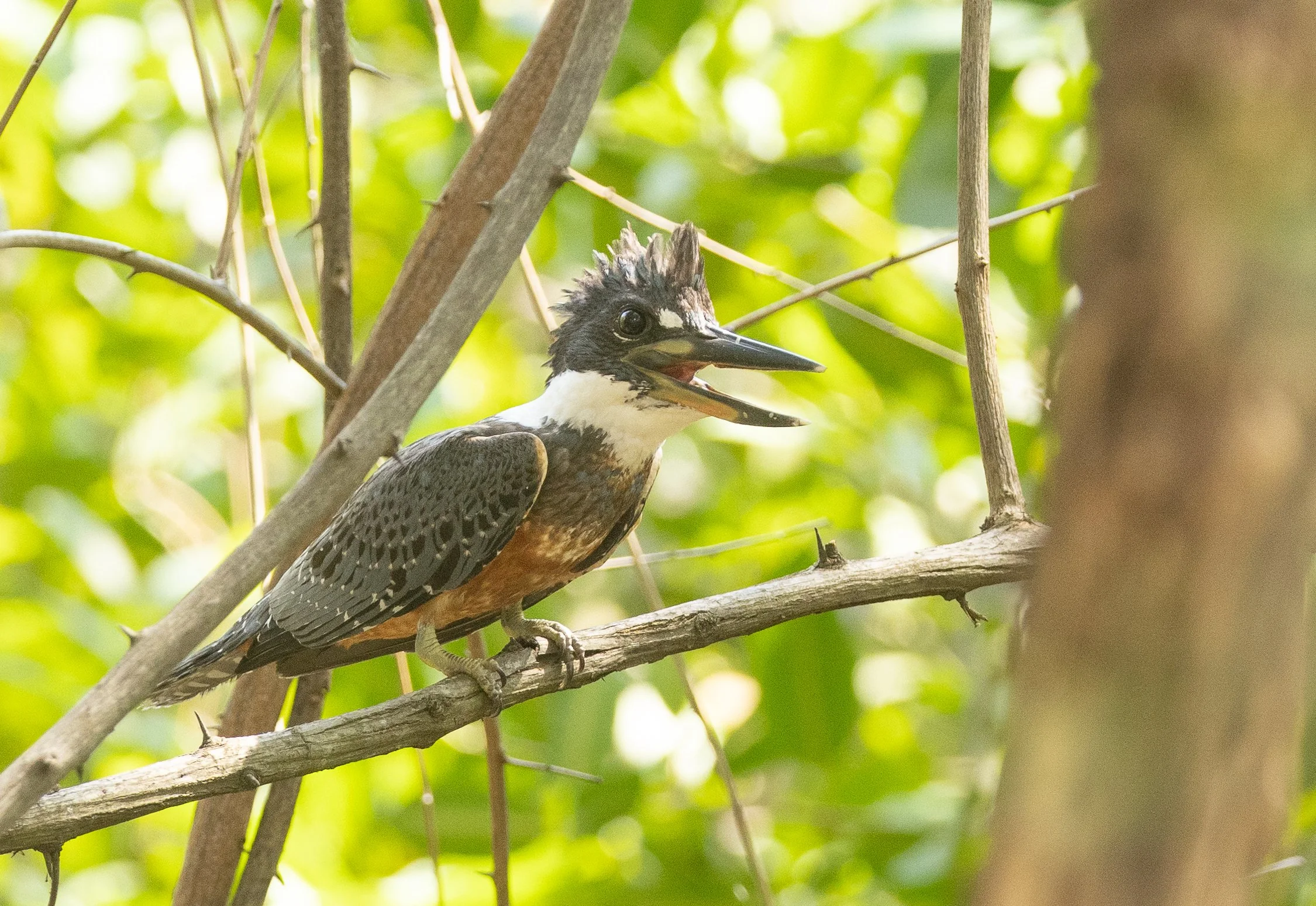 Tropical Kingbirds and Great Kiskadees made a racket while Clay-colored Thrushes and Thraupis tanagers ate from fruiting palms. Northern Waterthrush “chink” calls were omnipresent from the understory of the mangroves. The first show-stopper I encountered was a gloriously large Ringed Kingfisher at eye level. I admired it and snapped off some photos. I’ve seen plenty of Ringed Kings now between southern Texas and the neotropics, but they never get old. The black spotting on the wings really struck me - they’re quite gorgeous and well patterned upon close inspection, once you get past the initial shock and awe.