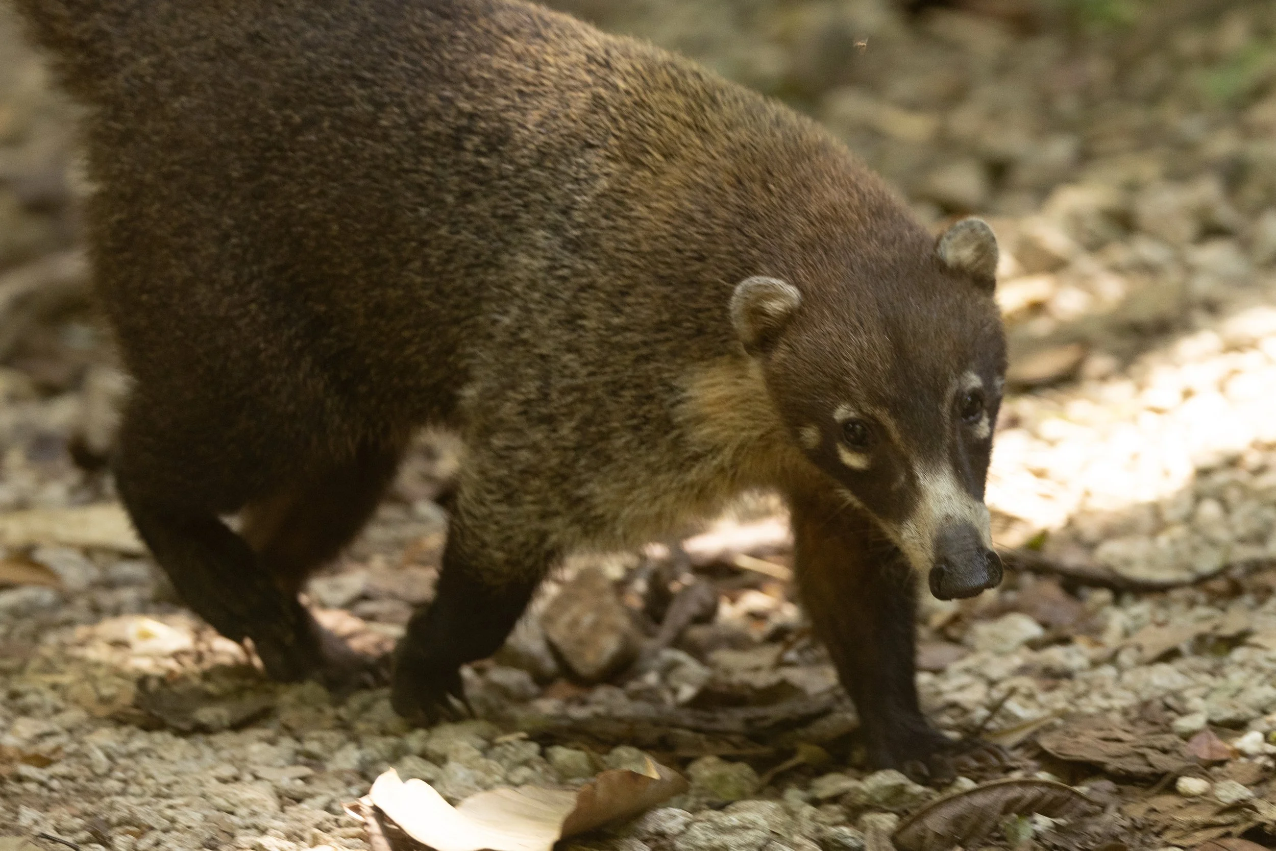After 20 minutes with the monkeys I got on my way. I encountered a group of White-nosed Coatis in the trail. Curious what they would do, I squeaked at them. I’ve had bobcats, Red and Gray Foxes, and mongoose all respond well to squeaking, and the coatis were no different. They trotted right up to me, within arms reach, and I squatted down to try and get some shots. They were too close to focus on while they snorted in the dirt. I took some video on my phone and was overjoyed to crouch among the coatis until they’d moved on.