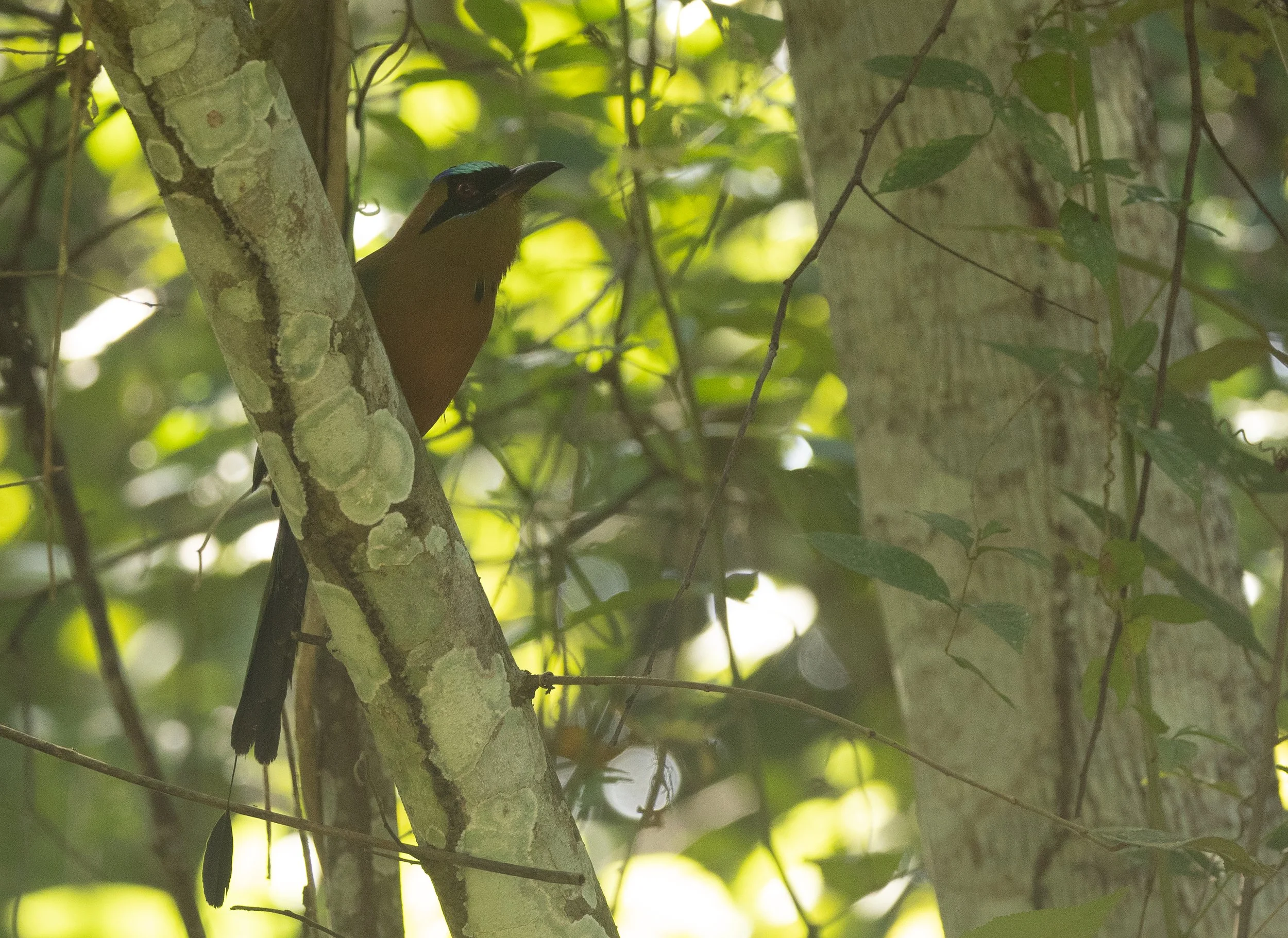 I was distracted quickly by tell-tale rackets protruding from the undergrowth ahead. They belonged to a Whooping Motmot. The bird and its mate obliged as I got fairly close and took some photos. The turquoise cap and black mask make for quite a spiffy bird.